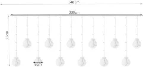 Creëer een magische sfeer binnen en buiten met een hangend lichtgordijn met bolvormige diffusers en 108 zuinige LED’s. Biedt 8 lichtmodi, afstandsbediening met timer, dimbaarheid en IP44-bescherming voor veilig gebruik aan ramen, op het terras of bij de ingang. Voeding via USB / netstroom zorgt voor comfortabel en energiezuinig licht in koel wit.