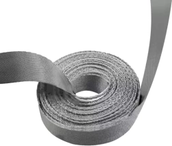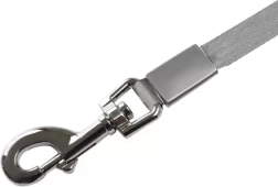 Stevige textielen band met soepele loop en robuuste verchroomde karabijnhaak voor zeker vastklikken aan halsband of tuig.