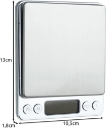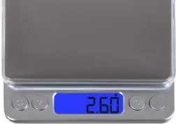 Zoek je nauwkeurige metingen, ook bij de kleinste hoeveelheden? Deze digitale keukenweegschaal van roestvrij staal met een kunststof behuizing biedt een precisie van 0,01 g en een maximale capaciteit van 500 g. Dankzij het blauw verlichte LCD lees je de waarden gemakkelijk af onder alle omstandigheden en met de TARE-functie kun je ingrediënten direct in een kom wegen zonder ingewikkeld rekenen.