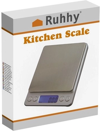 De compacte digitale keukenweegschaal van RUHHY met een bereik tot 500 g en een hoge precisie van 0,01 g is ideaal voor bakken, koken en het wegen van sieraden of kruiden. Hij biedt een verlicht LCD-scherm, de praktische TARE-functie, automatische uitschakeling en in de verpakking vind je 2 afneembare schaaltjes en AAA-batterijen voor direct gebruik.