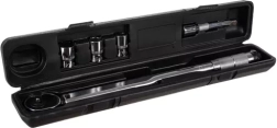 De universele momentsleutel 1/2" is ontworpen voor veeleisende taken waarbij maximale precisie en controle over het aandraaien nodig zijn. Dankzij het bereik van 28–210 Nm is hij perfect voor werkzaamheden aan auto’s, motorfietsen, montage in de werkplaats en reparaties in en om het huis. De ratelkop en de rechts/links-schakeling vereenvoudigen het werken in krappe ruimtes, terwijl de LOCK/UNLOCK-vergrendeling zorgt voor een veilige instelling en wissel van doppen.