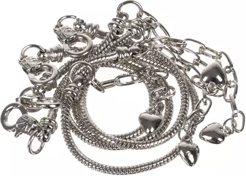Grote set - De set met 70 onderdelen maakt het mogelijk om sprookjesachtig kleurrijke armbanden te maken in verschillende vormen en met diverse motieven. Bij de set zijn 3 armbanden toegevoegd waarop de kralen en hangers worden geregen.