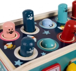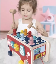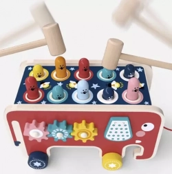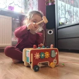 Dit speelgoed ondersteunt de ontwikkeling van de fijne motoriek en concentratie dankzij interactieve elementen zoals hamertjes en tandwielen.