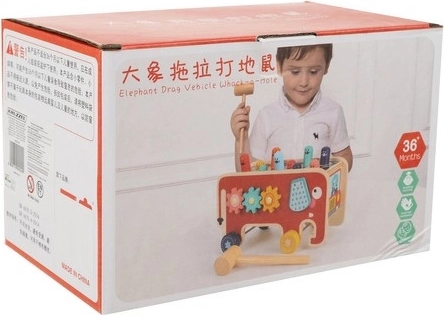 Houten kinderspeelgoed in de vorm van een olifant, dat de motorische vaardigheden en het logisch denken ontwikkelt. Biedt veel activiteiten die kinderen urenlang bezighouden.