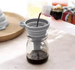 De opvouwbare siliconen trechter Ruhhy is een veelzijdige helper voor huishouden en werkplaats. Dankzij het harmonicadesign klap je hem in seconden uit en na gebruik weer op tot een volledig platte vorm, waardoor hij minimaal ruimte inneemt in de lade of aan een haak.