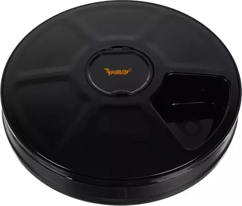 De automatische PURLOY-voerdispenser is een betrouwbare oplossing voor regelmatige porties, ook wanneer je niet thuis bent. De roterende schaal met zes compartimenten geeft de voorbereide porties stapsgewijs vrij op exact ingestelde tijden. Het heldere LED-display en de eenvoudige bediening versnellen het instellen van het voedingsschema voor honden, katten en kleine zoogdieren.