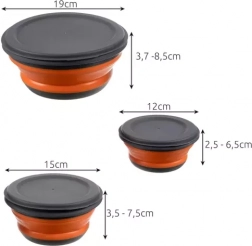 De set bevat kommen met volumes van 0,4 l, 0,85 l en 1,65 l, wat tegemoetkomt aan verschillende behoeften voor voedselopslag. Het opvouwbare ontwerp zorgt voor eenvoudige opslag.