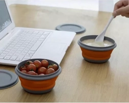 Maak kennis met onze opvouwbare siliconen kommen, die gemakkelijk uit- en in elkaar zetten, wat ruimte bespaart. Deze kommen zijn perfect voor opslag, niet alleen in de keuken, maar ook tijdens reizen, op een picknick of op het werk. In de set vind je drie verschillende maten containers, die opslag van verschillende voedselvolumes mogelijk maken.