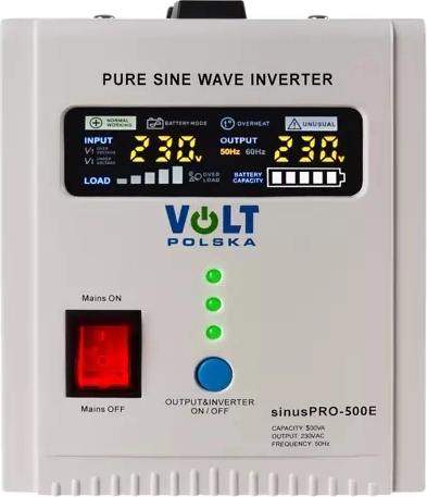 Ervaar de revolutionaire oplossing met de multifunctionele noodstroomvoorziening Volt Polska sinusPRO-500E. Dit apparaat biedt de ideale combinatie van DC/AC-omvormer, UPS en automatische oplader. Het kleurendisplay biedt u onmiddellijk inzicht in de belangrijkste parameters zoals netspanning, accuspanning, laadstatus of capaciteit.