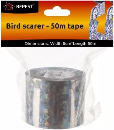 Afschrikwekkende tape Repest is uitgerust met een holografische laag die een driedimensionaal effect creëert. De reflecterende capaciteit zorgt ervoor dat vogels en andere dieren de tape mijden zonder hen schade te berokkenen. De tape is gemaakt van waterbestendig materiaal, waardoor hij bestand is tegen verschillende weersomstandigheden.