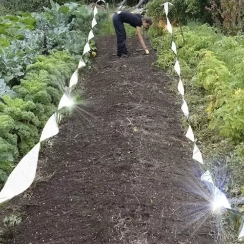 De tape is eenvoudig te gebruiken, je hoeft deze alleen maar van de rol af te wikkelen en aan te passen aan de benodigde lengte. Indien nodig kan het in kleinere stukken worden verdeeld en op verschillende plaatsen worden gemonteerd, bijvoorbeeld tussen stokken rondom gewassen of puntsgewijs voor effectieve resultaten.
