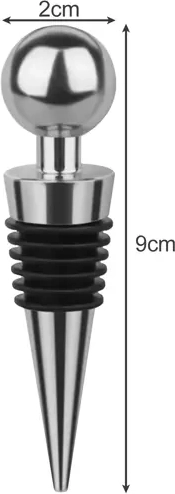 Het design omvat een metalen bolvormige knop en een kegelvorm, wat het inbrengen in de fles vergemakkelijkt. Rubberringen zorgen voor een volledige afdichting, terwijl het metalen ontwerp elke wijncollectie een moderne touch geeft.