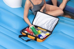 Naast het matras bevat de set ook een praktische draagbare koeltas, die je drankjes koel houdt, zelfs op de warmste dagen. Ideaal voor zomervakanties of uitstapjes naar meren of zwembaden; het matras biedt niet alleen waterpret, maar ook het nodige comfort voor ontspanning van volwassenen onder toezicht.