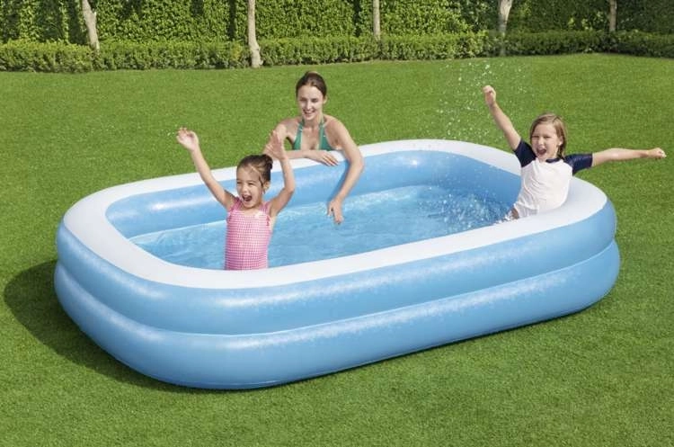SPECIFICATIES- Bestway productcode: 54006; materiaal: vinyl; uitvoering: 2 gelijke ringen / brede zijwanden / aftapventiel voor het legen; leeftijd: vanaf 6 jaar; capaciteit: 778 liter; afmetingen (lengte / breedte / hoogte): 262x175x51cm; gewicht: 4,5 kg