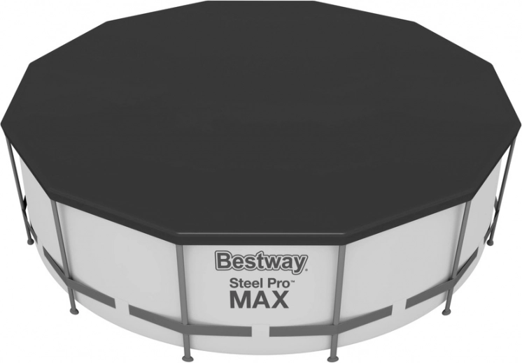 Het praktische BESTWAY afdekzeil voor ronde zwembaden met een diameter van 366 cm houdt je water langer schoon en klaar om te zwemmen. Dankzij het duurzame PVC, het aantrekkoord en de afvoergaten beschermt het zeil het zwembad tegen bladeren, insecten en lichte regen, voorkomt het algengroei en helpt het de watertemperatuur te behouden.