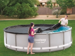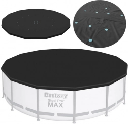 Een praktisch en duurzaam afdekzeil voor ronde framezwembaden met een diameter van 427 cm houdt uw water langer schoon en klaar om in te zwemmen. Het zwarte zeil verhoogt de thermische isolatie, vermindert vervuiling door vuil en kan dankzij de koorden eenvoudig en stevig worden bevestigd zodat de wind het niet weg kan blazen.