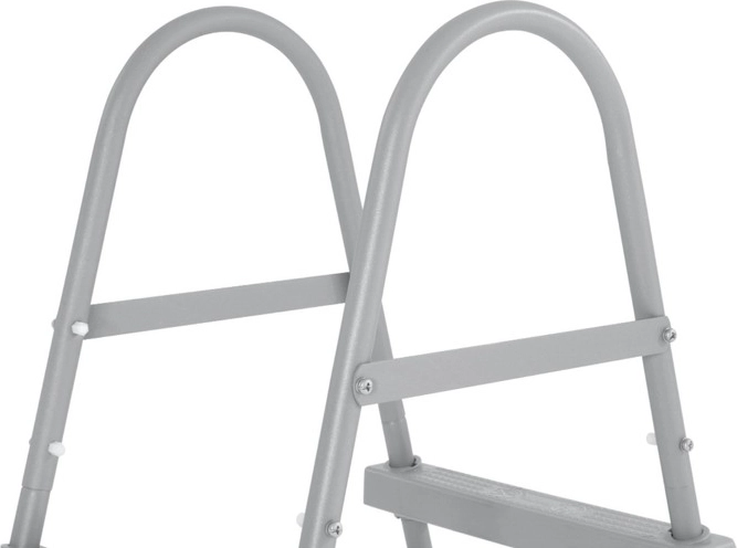 Dankzij de eenvoudige constructie is de ladder snel gemonteerd en klaar voor gebruik. Het dubbelzijdige ontwerp met 2×2 treden vergemakkelijkt de toegang vanaf beide zijden van het zwembad en verhoogt de algehele stabiliteit.