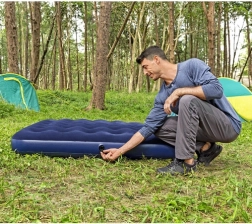Praktische ventielen voor snel opblazen en leeglaten besparen tijd, duurzaam vinyl (PVC) van vooraf getest materiaal garandeert een lange levensduur. De set bevat alles wat u nodig heeft: een Air Hammer handpomp, 2 kussens en een zelfklevende reparatiepatch voor kleine reparaties.