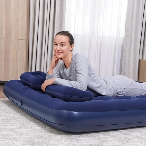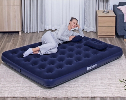 Geniet overal van comfort – het tweepersoons luchtbed BESTWAY Queen met afmetingen 203 × 152 × 22 cm is ideaal voor binnen en onder de tent. Het zachte velours oppervlak voelt prettig aan, terwijl de interne Coil‑Beam‑constructie de veren van een traditioneel matras nabootst en stabiliteit en een gelijkmatige gewichtsverdeling biedt.