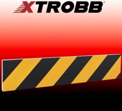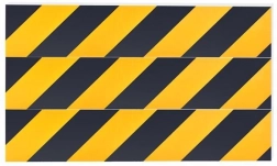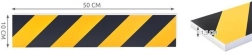Geel‑zwarte diagonale strepen werken als optische waarschuwing en helpen de afstand tot de muur beter in te schatten.