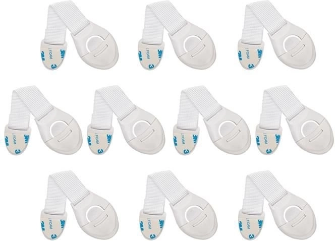 De set bevat tien sloten die effectief knelrisico voor vingers van uw kleine kinderen voorkomen en hen beschermen tegen ongewenste toegang tot gevaarlijke plaatsen. Eenvoudige bediening maakt snel openen en sluiten van de kast mogelijk zonder dat het gehele slot hoeft te worden losgemaakt.