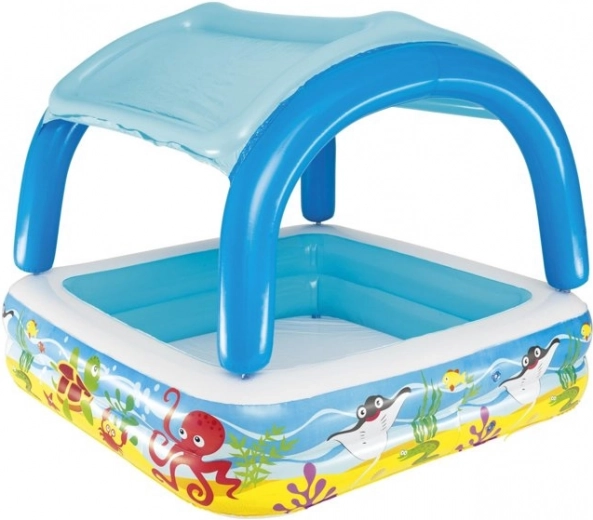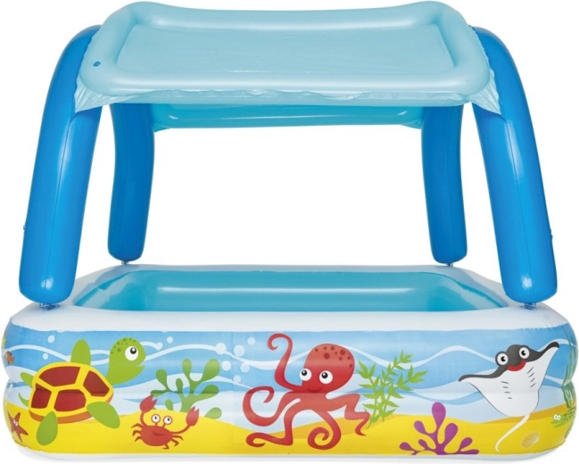 Dit kinderopblaasbaar zwembad van het merk Bestway is gemaakt van duurzaam vinyl materiaal, dat langdurig speelplezier en veiligheid garandeert. Het zwembad bevat twee gescheiden opblaasbare ringen, die stabiliteit en veiligheid bieden, terwijl de opblaasbare luifel de kinderen beschermt tegen schadelijke zonne-energie. Er wordt ook een waterdichte reparatiepatch meegeleverd, waarmee het zwembad zelfs in het water kan worden gerepareerd.