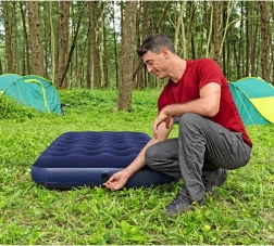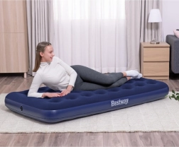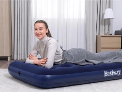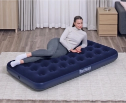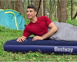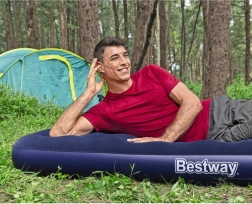 Geniet overal van een comfortabele nachtrust. Het eenpersoons opblaasbed van BESTWAY combineert duurzaam PVC en prettig velours voor comfortabel liggen zonder wegglijdend beddengoed. De interne coil-beam constructie verdeelt het gewicht gelijkmatig en garandeert stabiliteit de hele nacht.