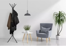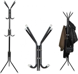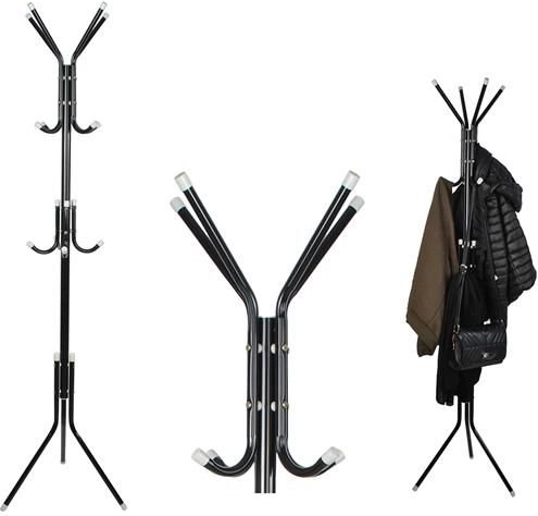 Met deze stijlvolle zwarte metalen kapstok houdt u eenvoudig orde. Hij is uitgerust met drie niveaus haken, waardoor u verschillende soorten kleding en accessoires kunt ophangen. Stabiliteit en duurzaamheid zorgen ervoor dat de kapstok stevig blijft staan, zelfs bij gebruik met veel kleding.