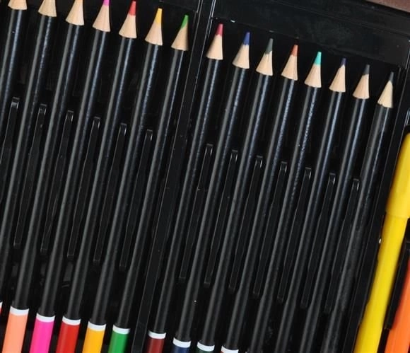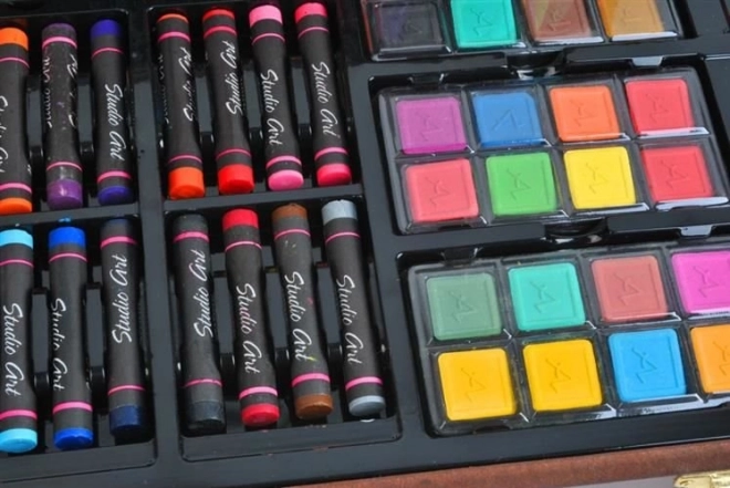 • Aquarelverf, oliepastels, stiften, kleurpotloden in één set