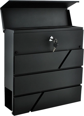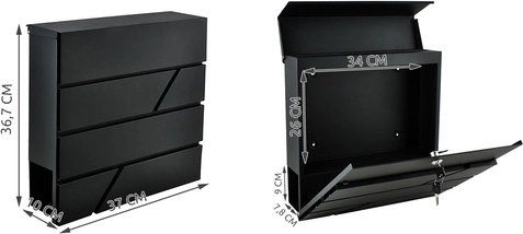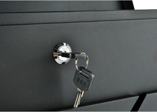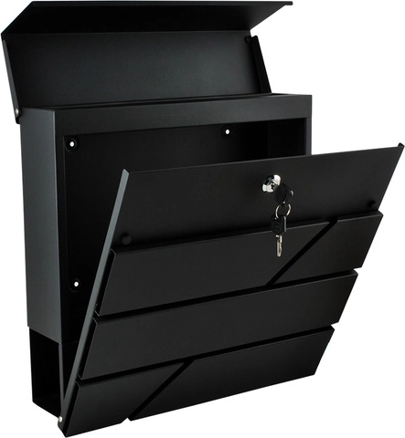 De royale ruimte biedt plaats aan zendingen tot A4-formaat. De onderste krantenrol houdt drukwerk gescheiden en gemakkelijk toegankelijk. In de set vindt u 2 sleutels voor het gemakkelijk delen van toegang en montage-accessoires, inclusief pluggen en rubberen afstandsringen voor een nette en stevige bevestiging.