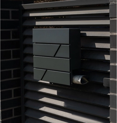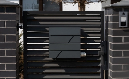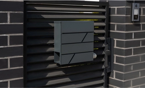 Elegante brievenbus in antraciet van duurzaam verzinkt staal. Biedt een ruime inworp voor A4-formaat, een regenkap, sluiting met 2 sleutels en een praktische krantenrol. Ideaal voor montage aan hek of muur, met montageduimen in de verpakking.