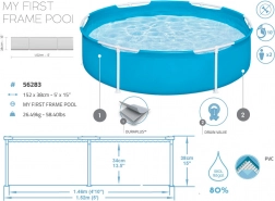 Het zwembad is uitgerust met een stabiel, metalen frame dat de juiste sterkte en duurzaamheid van de hele constructie waarborgt. De wanden zijn gemaakt van drie-laags materiaal – een combinatie van slijtvast polyester en PVC – dat beschermt tegen beschadiging.