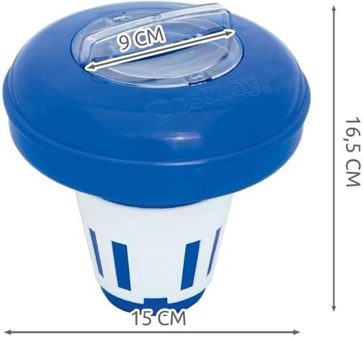 Grote drijvende chloordispenser voor zwembad Bestway is de ideale oplossing voor een eenvoudige en efficiënte verdeling van chemicaliën in uw zwembad. De dispenser is gemaakt van duurzaam plastic, geschikt voor langdurig gebruik.
