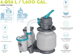 Met een capaciteit van 6056 l/u helpt de pomp snel onzuiverheden uit uw zwembad te verwijderen. Het is noodzakelijk om een filtermedium te gebruiken - ofwel kwartszand (0,45-0,85 mm) of efficiënte filterballen POLYSPHERE.