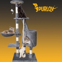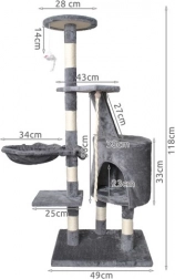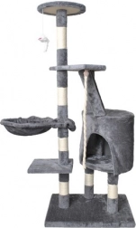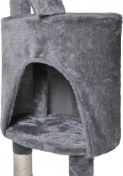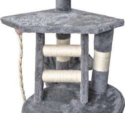 De krabpaal is ecologisch vervaardigd van plantaardig sisaltouw, aangevuld met zacht pluche op de basis, en biedt vier niveaus voor spelen, rusten en klimmen. Bevat een knus huisje met een tweestaps trapje en een hangend speeltje om de nieuwsgierigheid van katten te stimuleren.