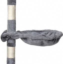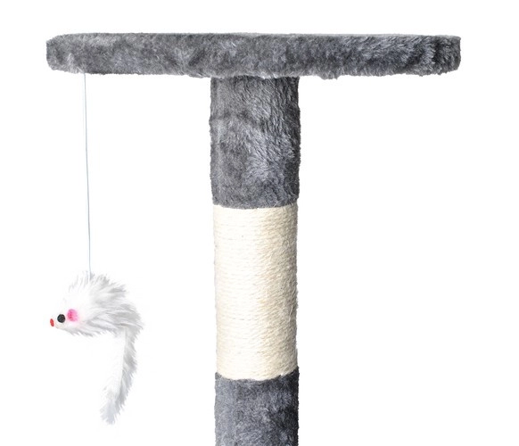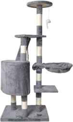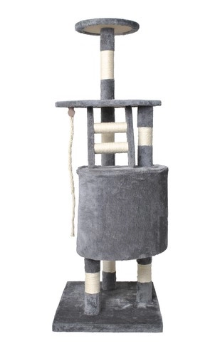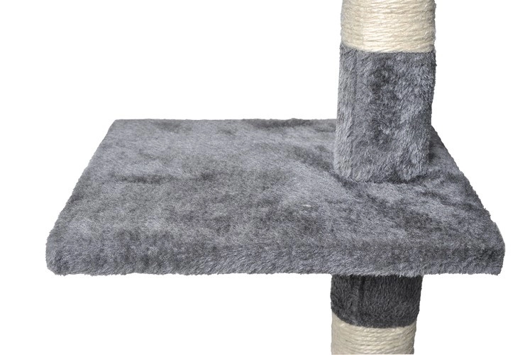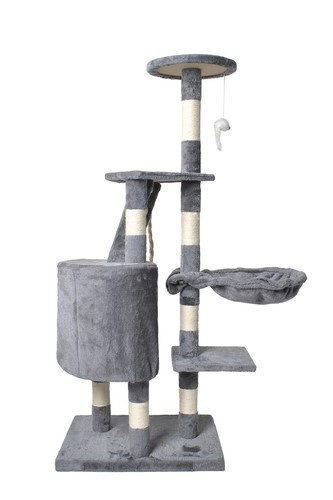 Dankzij het moderne design past hij in elke kamer en stijl. De volledige specificaties zijn als volgt: grijze kleur, materialen zoals MDF-plaat, kunstpluche stoffen en papieren buizen met sisaltouw.
