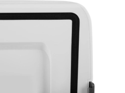 De koelkast ondersteunt dual power – via het lichtnet 220–240 V en via de 12 V-autostekker (beide kabels inbegrepen). Lage geluidsproductie zorgt voor comfortabel gebruik, terwijl de vergrendelbare handgreep de deur veilig gesloten houdt tijdens transport. Het wisselen van modus gebeurt via een schakelaar aan de achterkant met controlelampje.