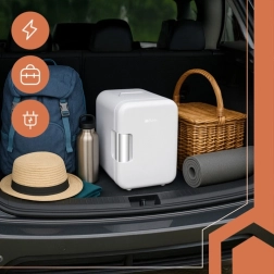 Deze draagbare koelkast met een inhoud van 4 liter is een geweldige metgezel voor uitstapjes, picknicks en lange autoritten. Dankzij de modus koelt en verwarmt blijven drankjes en snacks verfrissend in de zomer en aangenaam warm in de winter. Binnen passen blikjes of flessen tot een hoogte van 19 cm; het uitneembare schap en het deurvak maken organiseren eenvoudig.