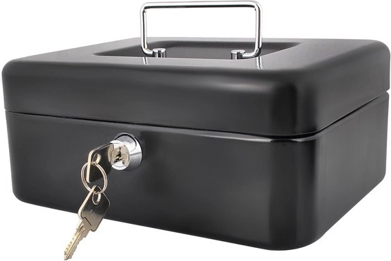 - geldkistje, inzet, 2 sleutels