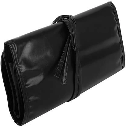 De zwarte etui met koord houdt de kwasten overzichtelijk gerangschikt, beschermd en altijd binnen handbereik. Uitgevouwen kan hij eenvoudig worden opgehangen.