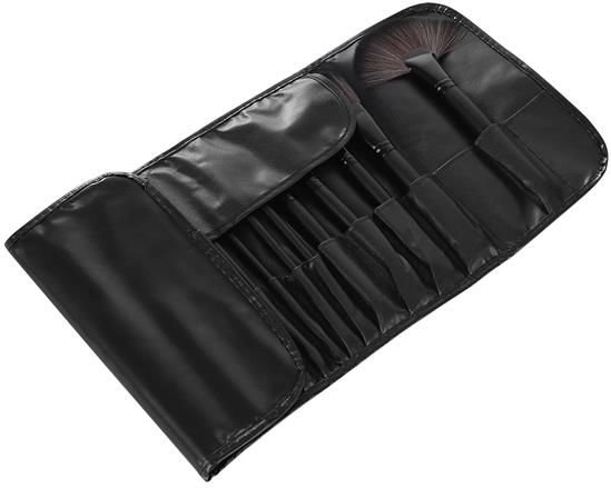 Inclusief een duurzame zwarte etui met koord, die uitgevouwen kan worden opgehangen – ideaal voor perfecte organisatie bij het opmaken thuis en onderweg. Elke kwast heeft zijn eigen plek, zodat je altijd snel vindt wat je nodig hebt.