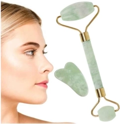 Jadeiet, vaak de “steen van de jeugd” genoemd, staat bekend om zijn koele aanraking en soepele glij over de huid. Massage met de roller ondersteunt de lymfedrainage, helpt bij de vermindering van wallen en donkere kringen onder de ogen en laat de huid fris en uitgerust achter. Voor extra verfrissing kun je het hulpmiddel voor gebruik in de koelkast koelen.