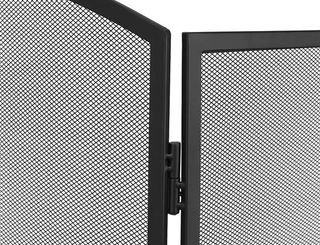 Elegant, driedelig haardscherm met fijn stalen gaas dat de vloer en omgeving betrouwbaar beschermt tegen hete vonken en smeulende deeltjes. Met afmetingen van 118 × 76 cm biedt het een hoog veiligheidsniveau, de matte zwarte afwerking past perfect in het interieur en de opvouwbare constructie maakt vrije positionering mogelijk afhankelijk van de breedte en vorm van de haard. Het duurzame stalen gaas laat warmte en zicht op de vlammen door, maar houdt vuil en hitte tegen.