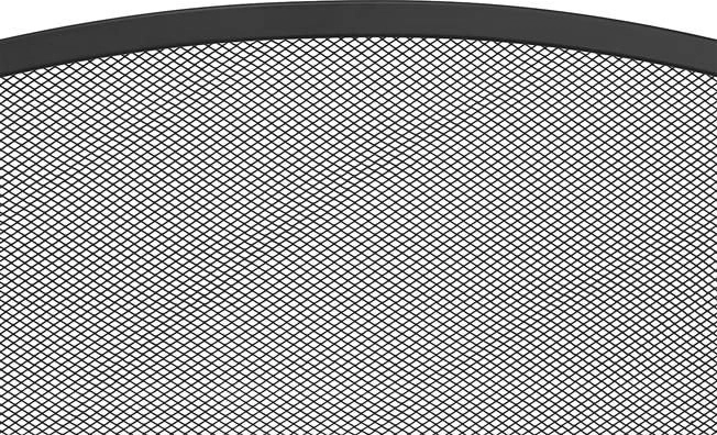 Het fijne stalen gaas vangt vonken en vuil op; de matte zwarte afwerking camoufleert kleine krasjes en zorgt voor een elegante uitstraling.