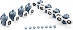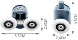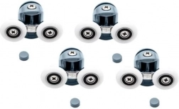 Vervang versleten of haperende loopwielen en herstel het soepele en veilige openen van douchedeuren. De set bevat bovenste dubbele en onderste enkele, wegklapbaar losklikbare wieltjes voor eenvoudige reiniging en onderhoud. De universele constructie met kogellagers past zich aan de vorm van de geleider aan en voorkomt dat de deur uit de rail springt.