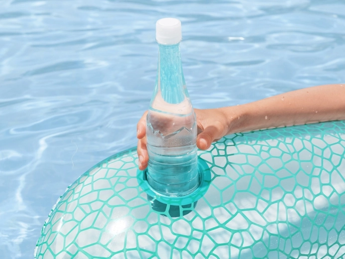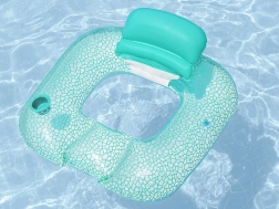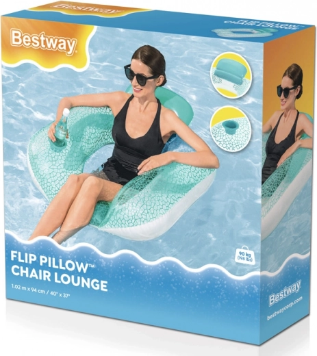 De opblaasbare ligstoel in stoelvorm combineert comfort en functionaliteit voor ontspanning bij het water. De ergonomische rugleuning ondersteunt de rug, terwijl de houder voor beker of fles je favoriete drankje altijd binnen handbereik houdt. Het stijlvolle turquoise-witte mozaïekdesign komt prachtig tot zijn recht op elk wateroppervlak.