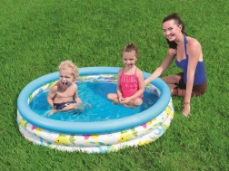 Het opblaasbare kinderzwembad BESTWAY met afmetingen 122 × 25 cm is een uitstekende keuze voor de eerste waterpret. De transparante wanden met een vrolijk zeedierenmotief prikkelen de fantasie en nodigen kinderen uit om veilig buiten te spelen. Dankzij het zachte maar stevige PVC is het zwembad bestand tegen scheuren en klaar voor meerdere seizoenen.