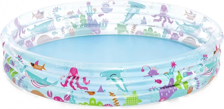 Het opblaasbare zwembad BESTWAY Deep Dive is een ideale keuze voor de eerste waterpret van kinderen vanaf 3 jaar. Hoogwaardig PVC-materiaal en drie afzonderlijk opblaasbare ringen zorgen voor stabiliteit, duurzaamheid en gebruiksgemak. Het kleurrijke onderwaterontwerp met vissen en planten spreekt kinderen direct aan.