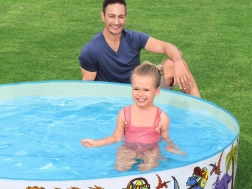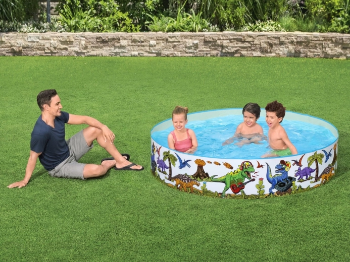 Het Bestway kinderzwembad met kleurrijke dinosaurusprints is een uitstekende keuze voor warme dagen. Dankzij de zelfuitvouwende constructie hoef je het zwembad alleen maar uit te leggen en met water te vullen – binnen een mum van tijd is het klaar voor waterpret. Het duurzame PVC-materiaal zorgt voor een lange levensduur en zorgeloos gebruik.
