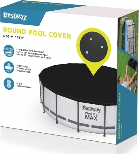 De Bestway beschermhoes is ontworpen om optimale bescherming voor uw zwembad te bieden. Dankzij het gebruik van duurzaam en sterk materiaal gaat de hoes vele seizoenen mee. Stevige bevestigingskoorden zorgen ervoor dat de hoes op zijn plaats blijft, zelfs bij winderig weer, terwijl de afvoeropeningen effectief overtollig water afvoeren.